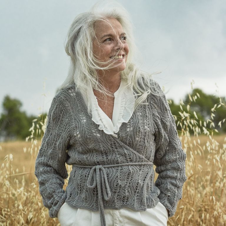 The use of Ultrasoft in this model emphasises and defines the details of the openwork lace stitch. The cardigan is finished off with a tie fastening at the waist and is a perfect garment to complete your most natural of looks.