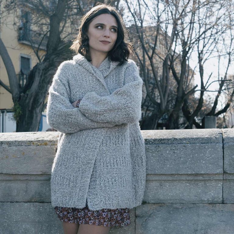 Komorebi hooded women’s cardigan pattern This carded effect cardigan, thanks to the Komorebi yarn, is perfect for sports and everyday looks. Knit with a subtle texture, this straight and simple jacket looks great with and without a belt. And what about its hood? The perfect casual detail!