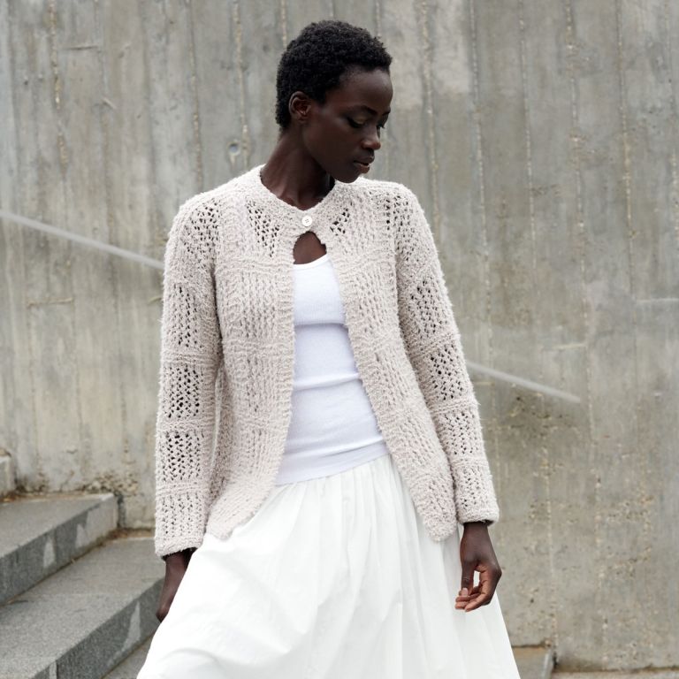 Make a unique lace cardigan with this knitting pattern. Featuring a delicate fantasy stitch and a modern touch thanks to Pluma yarn by Concept by Katia, this cardigan is perfect for any occasion. The design includes a button at the neck for added versatility and comfort. Start knitting this timeless and easy-to-wear cardigan today!