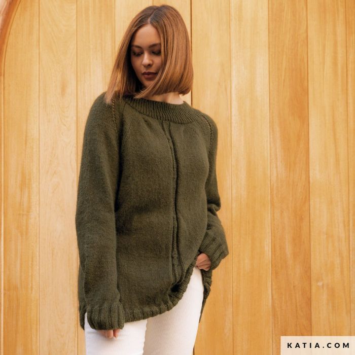 Choose a color among the Autumn or Winter shades of Soft Gratté to knit this charming sweater with raglan sleeves and an original vertical cabled design on the front. It also features a large ribbed neckline and small lace linear details. A knitting pattern that you can enjoy with plus size options.