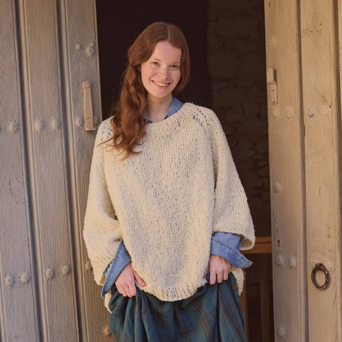 Create a simple hug of a sweater with Concept Sussurro, a pure wool bouclé yarn that offers volume, softness, and a fluffy texture. Worked seamlessly in the round, this roomy piece is ideal for enjoying winter comfort in style. It’s the perfect design to learn to knit your first project with circular needles. Enjoy the pleasure of making comfortable, timeless garments with your own two hands.