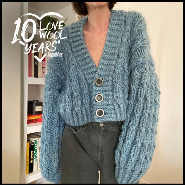 The Blue Cardi is a short and relaxed cardigan with a V-neck and a beautiful “petites cordes” pattern that enhances the body. Designed by Katharina from Le Pull Studio and knitted with Katia Love Wool, this top-down pattern is perfect for enjoying the process.