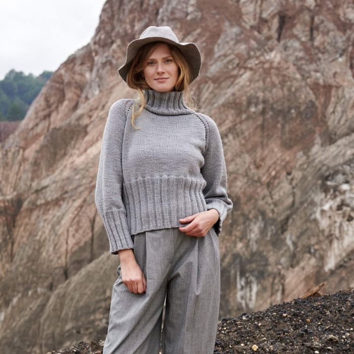 Dive into creating a top-down sweater with Merino Sport by Concept by Katia. This pattern from the Concept 16 magazine, perfect for newbies to circular knitting, includes a 2x2 ribbed neck and raglan sleeves for added comfort. It is a basic and timeless garment, ideal for pairing with pants or dresses. Dare to learn how to knit in the round with this easy sweater pattern!