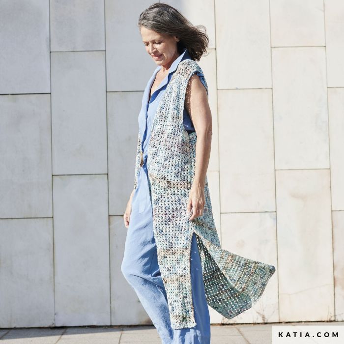 Marmara crochet long vest Vests are a must-have this summer. An oversized vest with long side slits is a wardrobe staple. Choose your favorite color and enjoy the softness of the natural fibers that Marmara is made of.