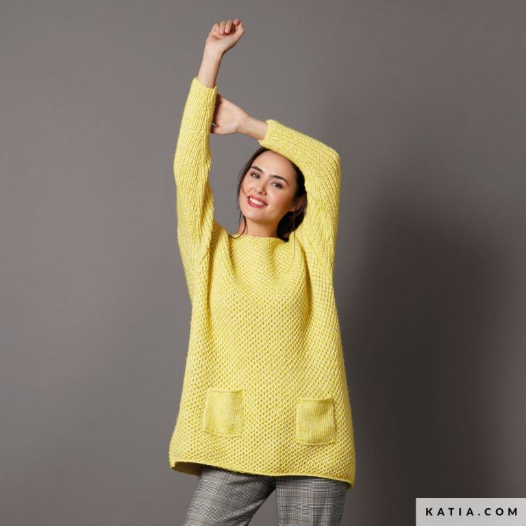Woman's long pullover in honeycomb stitch.