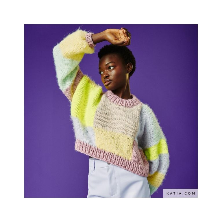 WOW! Billie colorblock short Sweater Knitting Pattern - Intermediate - (99999-1006-1)