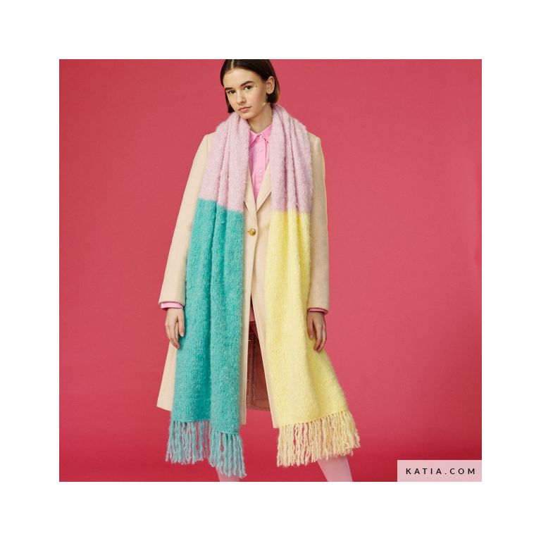 We present to you the most WOW scarf! designed by @studioceliahoste! This maxi two-needle colorblock scarf is the perfect complement to your sweetest looks. Made with WOW! Fluffy brushed wool in three trendy colors, feel the warmth and softness of this scarf on the coldest days. Have fun adding the large fringes at the ends!