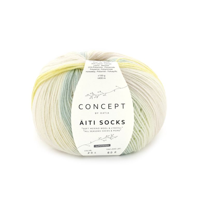 Äiti Socks by Concept by Katia is the new All Seasons sock yarn made of merino wool and lyocell, available in solid colors and various prints. Perfect for any season, these yarns inspire you to knit socks and so much more. Discover the softness and versatility of Äiti Socks and get knitting!