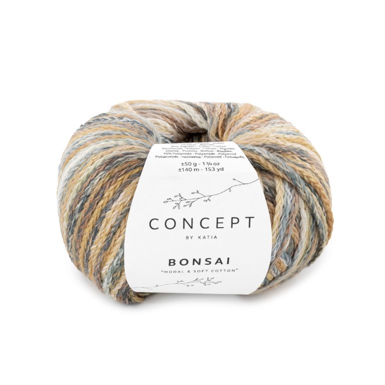Be amazed by Bonsai by Concept by Katia, a yarn that combines modal and cotton in an elegant chainette yarn with a vibrant multicolor effect. With unique softness and warmth, it’s the natural choice for knitting year-round. Add a burst of color to your projects with Bonsai and start creating something special today!
